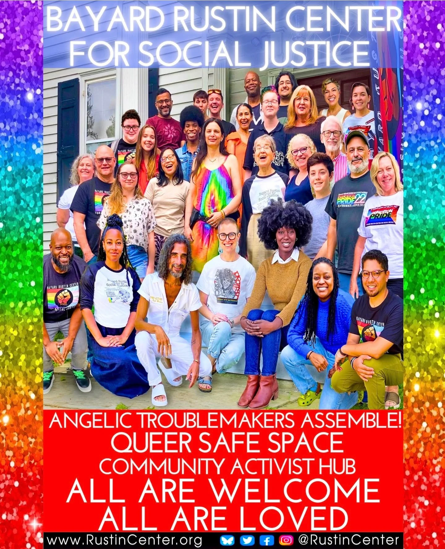 In camaraderie & co-conspiracy, we honor our inspirational namesake Bayard Rustin’s legacy through social engagement, community organizing, public education, advocacy for youth & families, & our just-about-to-drop quintessential Queer History Archive ~ a freely accessible collection protecting & preserving LGBTQIA+ narratives through the years & amplifying heretofore unheard voices all across the rainbow spectrum.