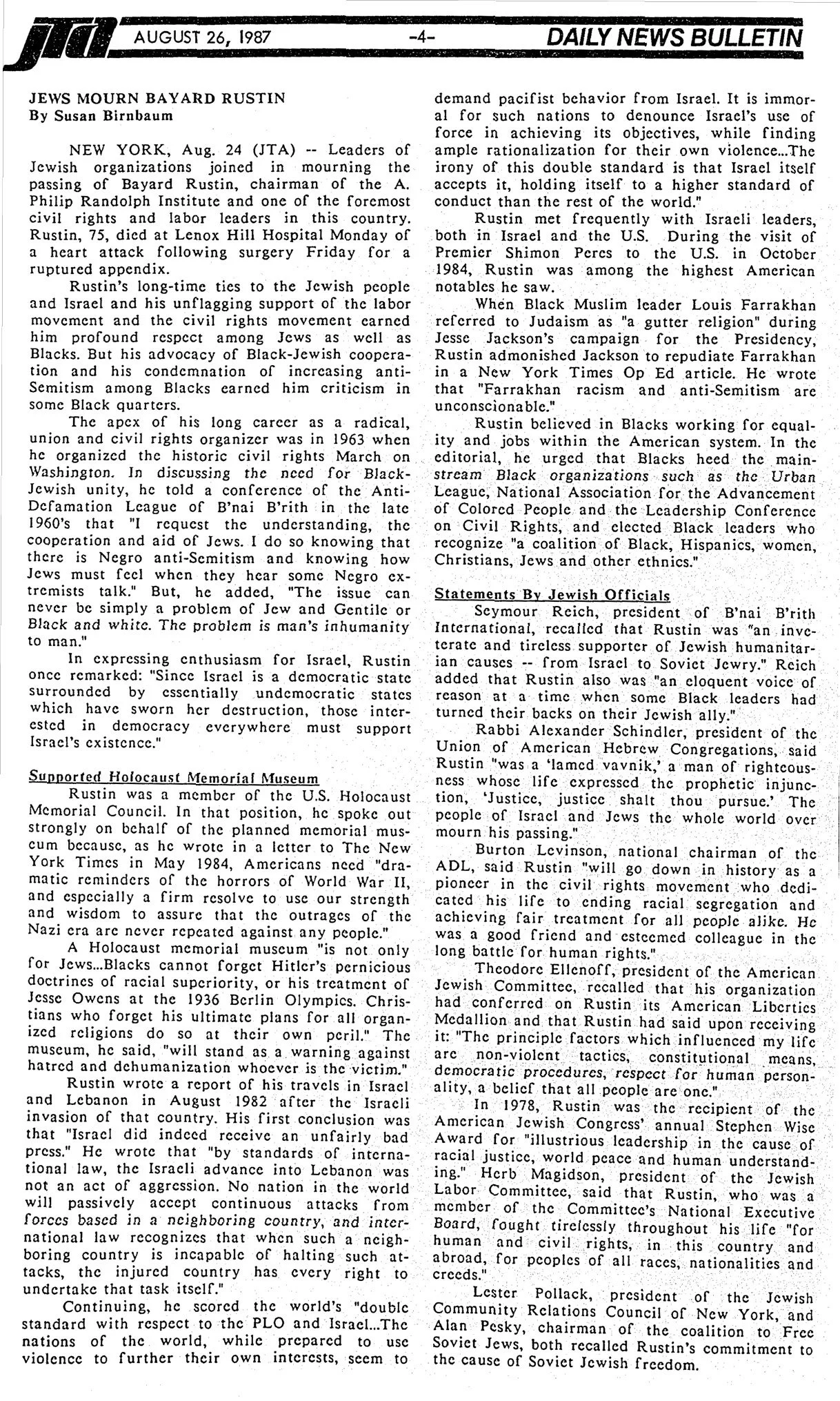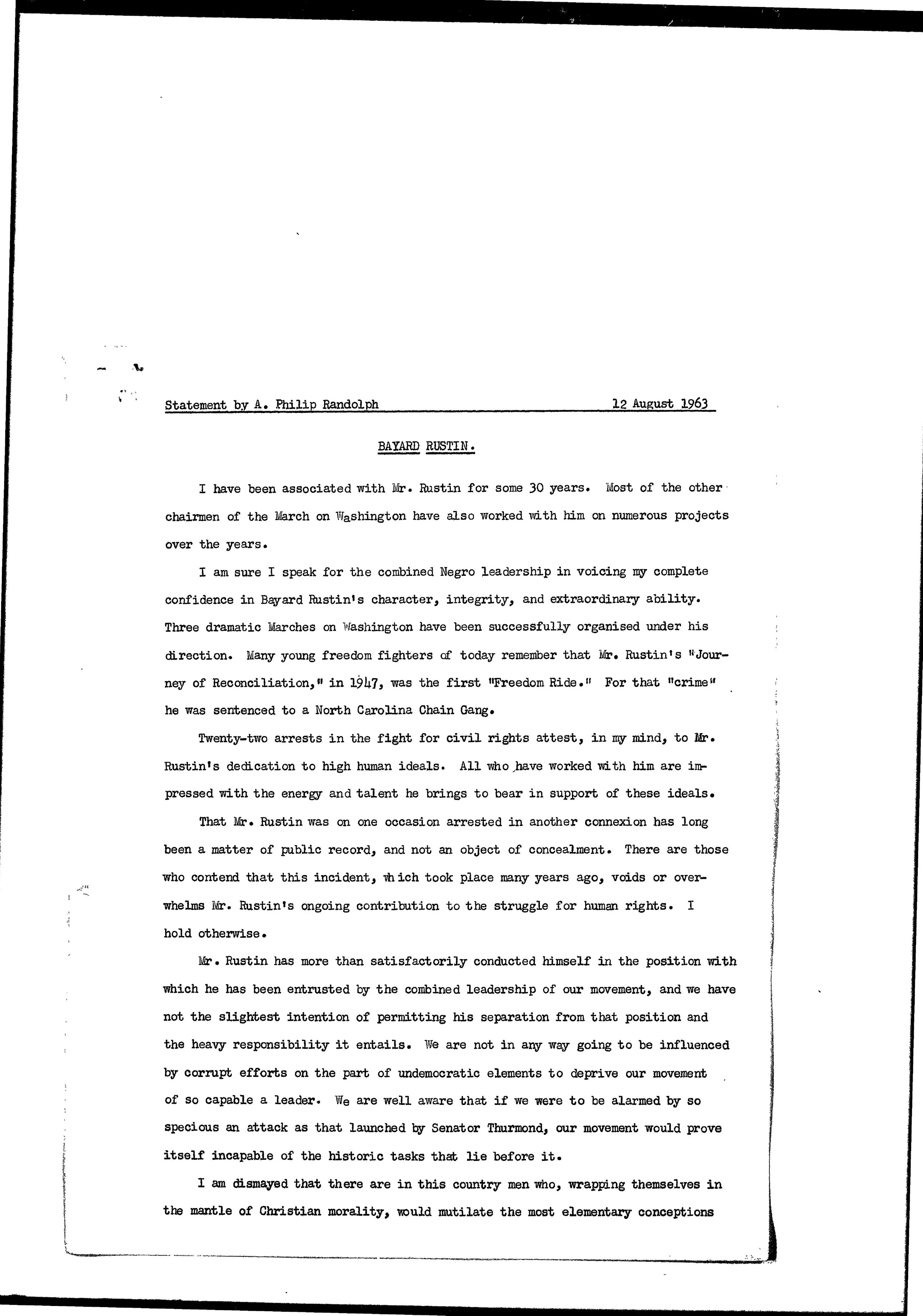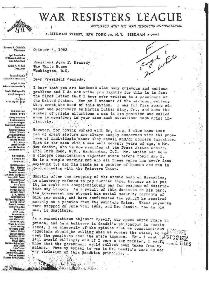 Bayard Rustin's Letter to JFK Defending War Tax Resister Max Sandin