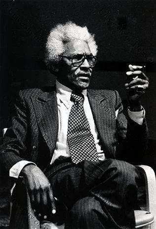 A candid photograph showing Bayard Rustin in a relaxing moment.